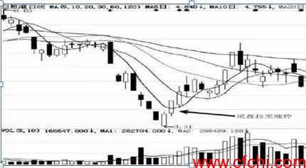 2、个股在主力洗盘结束时出现“尾盘拉升”是一个值得注意的买入信号。