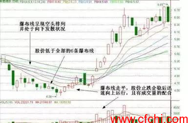 (3)瀑布线处于向下发散状况;这时如果出现瀑布线走平,股价止跌企稳后迅速向上运行,且有成交量的配合,投资者可以买入。