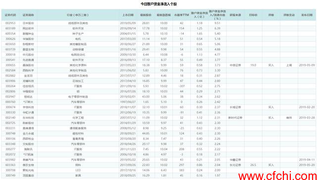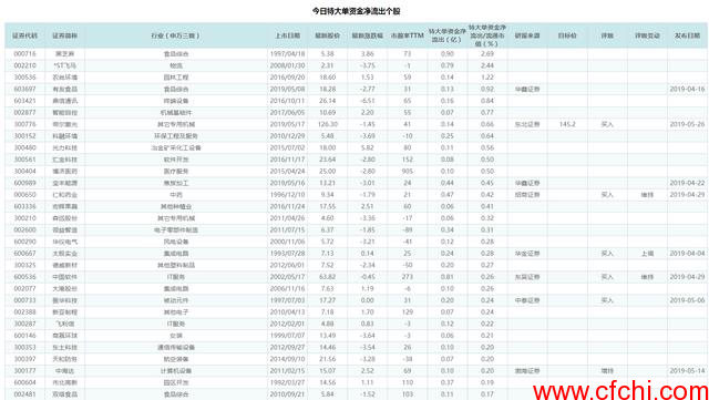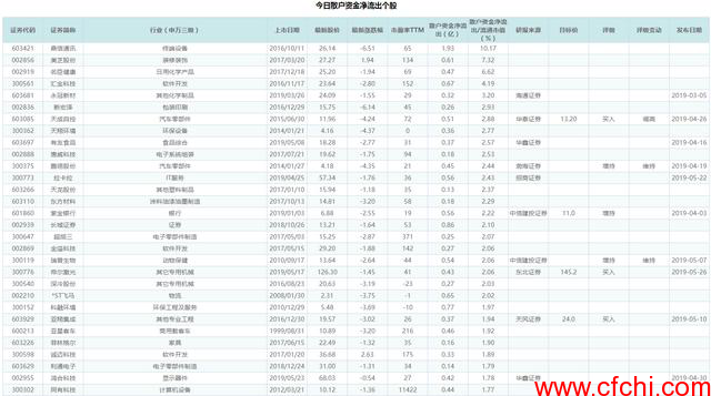 同样地,我们按照散户资金的净流出/流通市值从大到小排序,列出了净流出/流通市值最大的30只股票: