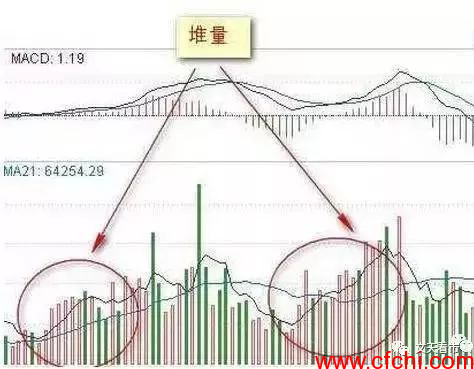 这是一种有序的成交量温和递增,堆量反应出来的就是健康的上涨形态。从“庄家市”的角度来讲,当主力意欲拉升的时候,通常都会把成交量做得非常漂亮,几日或者是几周以来,成交量 缓慢的放大,股价慢慢的推高,成交量在近期的K线图上,形成一个状似土堆的形态,堆得越漂亮,就越有可能产生大行情。相反,在高位的堆量就表明了主力已不想玩了, 在大举的出货。