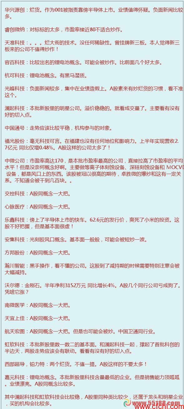 最后是网上有人对首批上市的科创板票做的一个粗略简介,有一定的参考价值,可以看一下。