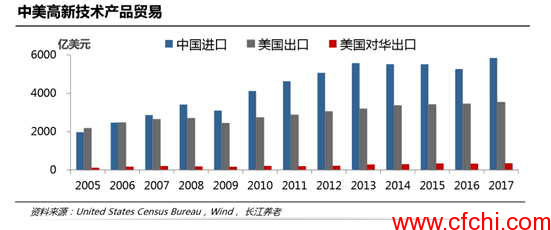 美国严格限制对中国出口高科技产品,其对中国出口的高科技产品占其高科技产品总出口的不足10%。