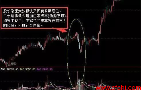 1、股价急速大跌很快又回复前期高位,由于这样做会增加庄家成本(低抛高吸),如果出现了,庄家花了成本就要有更大的收获,所以还会再做。