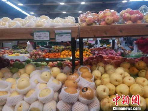 图为北京丰台一家社区超市水果区。谢艺观 摄