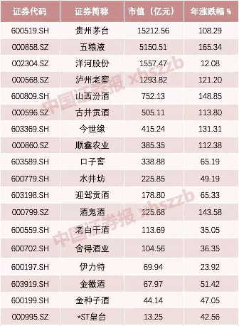 Wind数据显示,贵州茅台今年以来的涨幅为108.29%。酒水指数同样领涨,今年以来的涨幅为99.99%。