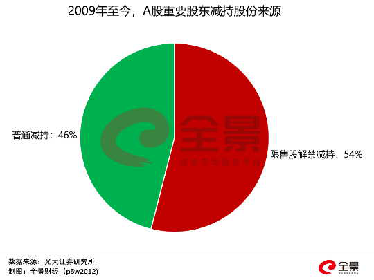 而,限售股解禁历来都是A股减持的主要来源。据光大证券统计,2009年至今A股产业资本累计净减持9155亿元,其中限售股解禁部分占54%,为A股减持、套现最主要的来源。