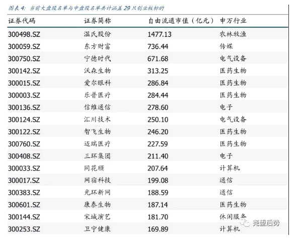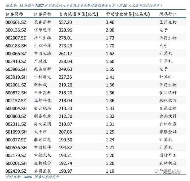 国盛证券建议关注,MSCI纳入创业板标的名单,以及根据此前披露名单对于MSCI中盘股带动增量资金可能较多的个股。