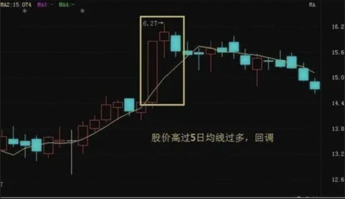 (1)股价离五日均线过远,高于五日均线过多,也就是“五日乖离率”太大,那就是属于短线卖出时机。乖离率多大可以卖出,这个就要视个股强弱,大小有所不同,一般股价高于5日线7%——15%,就属于偏高,适宜卖出。如果是熊市,一般股价低于5日线7%——15%,适宜短线买进。