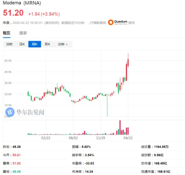 因为美国生物技术公司Moderna股价的持续上扬,哈佛大学医学教授Timothy Springer的500万美元早期投资,如今一路飙涨至8亿美元,涨幅高达159倍。