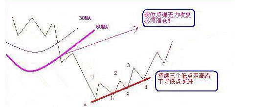 在接下来的时间里,您必须耐心等待股票触底反弹。 例如,如图1所示,三个低点持续上升,您可以沿着下面的低点买回早期清仓筹码。 A-D点都是回购的机会,但只有测试前两个低点才能买入,毕竟,如果再次下跌,触底趋势仍在进行中。