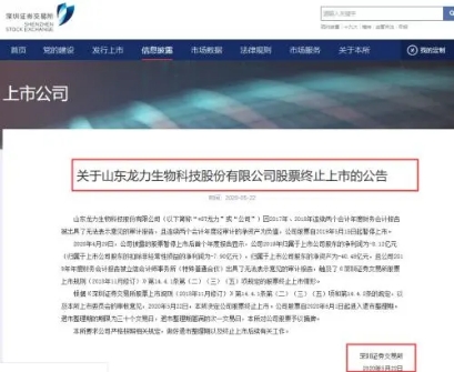 5月22日晚间,深交所发布关于山东龙力生物科技股份有限公司股票终止上市的公告。