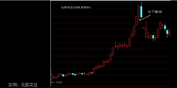 这种k线的特征,是上影线较长,实体较小,阳线与阴线均可。但阳线信号更强烈一些,而阴线的信号则相对隐蔽一些。它的前提条件必须是在股价调整了一段时间后的相对低位。这种k线的含义是主力机构试探性的进场建仓,但规模不大。因此,盘中k线留下一定的上影线,并且实体不大,一旦主力资金认为时机成熟,那么接下来将进一步加大建仓力度,从而导致一根大阳线的出现,使底部得以确认。因此,这种k线发出的信号只能是警示性的,而一旦确认性信号出现,那么抄底将会从容不迫。