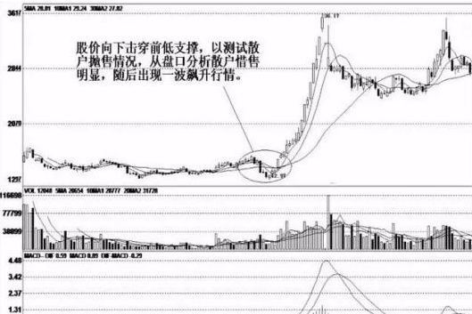 不难想象,庄家在风平浪静的时候突然打压股价,直至跌停板,然后让股价自然发展,以此来测试盘中的持股意愿和承接盘的动向。跌停试盘兼具试盘与洗盘的双重作用,目的是测试下档买盘力量的强弱。如果买盘力量较强,则会继续向下打压砸盘,同时,在打压砸盘的过程中,也可以迫使部分投资者因害怕巨大亏损而恐慌性抛出,庄家趁机在较低价位再次悄悄买入。在跌停试盘过程中,成交量持续萎缩,当出现地量水平时,即宣告试盘动作结束。