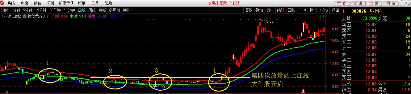 1.飞亚达主力经过三次上碰红线,回落洗盘,主力玩的耐心十足,磨人的本领十分温柔阴柔,第四次站上之后,一去不复返了。