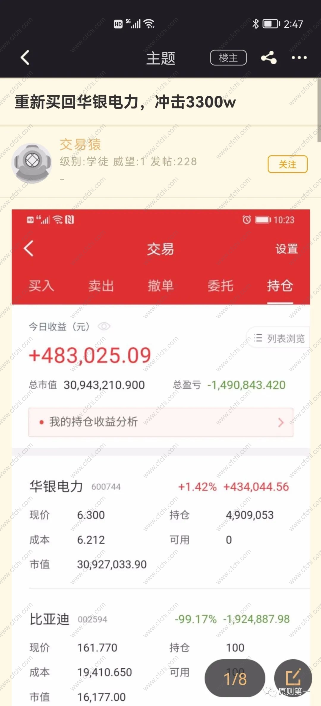 买入华银电力那篇帖子的发帖时间是3月25日,当时交易猿的资金是3000万左右。