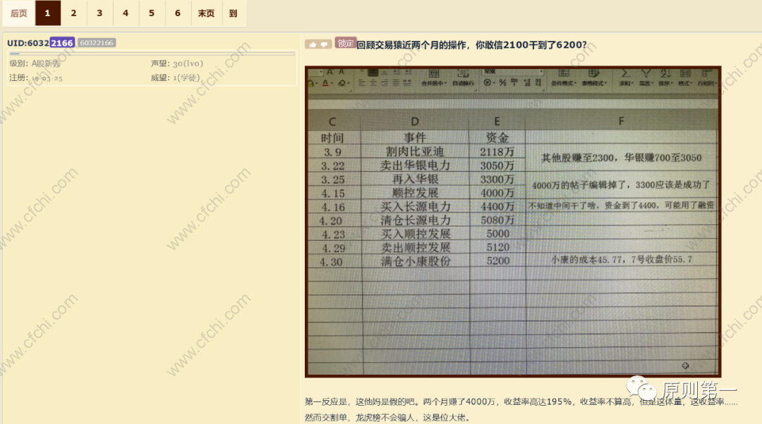 上面这张图是NGA某网友发的帖子,从中我们可以看到那两个月间交易猿惊人的资金增长速度。当时论坛内有很多人对其表示怀疑,认为他和许多所谓的“股神”一样,纯粹是靠PS交割单来唬人的。