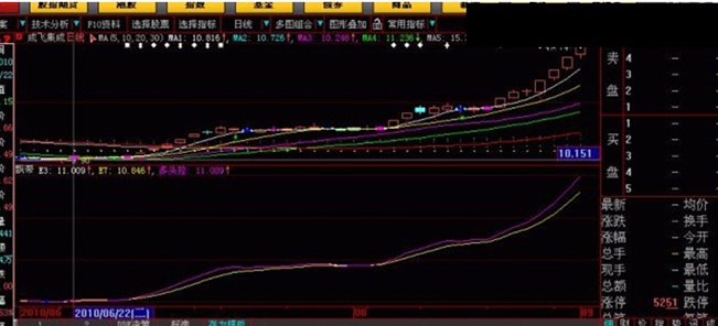 强势股运行都沿着5日线不断的飙升,稍弱的沿10日线运行。均线系统是最用的系统,它可以直接判断股票运行的强弱。大家可以去找找任何一只大幅拉升的股票,可以发现股价一定会沿着5日线不断的上涨,量能持续放大(大量后缩量更好),如果有打到5日线10线下,也会在一天两天马上复位继续上涨(一般收盘不破25日均线),不然就不是强势股了。如果说我们持有的股票,均线波动混乱,那就不可能是强势股。