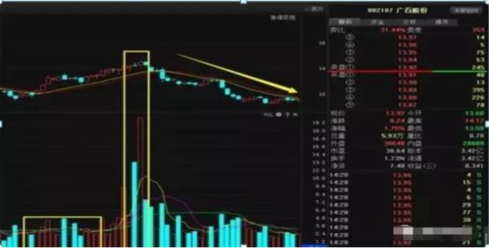 二是放量(股票)后小幅上涨,股价小幅顶部震荡,但是就是不上攻。这是主力最后的出货。等到散户投资者意识到的时候已经晚了,会有一批人逐渐被套;