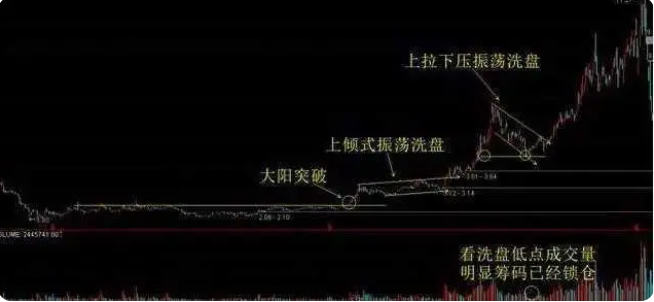 对于实力较弱、控盘能力不足的庄家,经常会边拉升边洗盘。具体来看,庄家每天会让股价在大幅振荡,同时让K线出现阴阳交替的形态,但总体走势逐渐向上。在这种情况下,敏感多疑的投资者会内心恐慌,获利后交出筹码,而庄家达到洗盘目的。