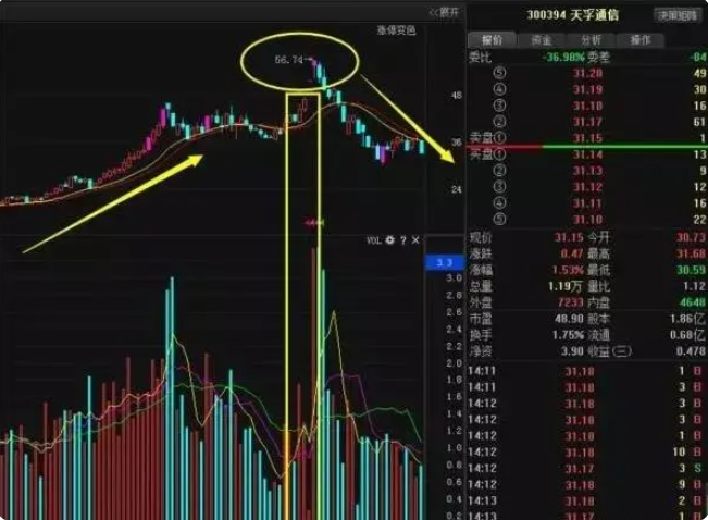 比如出现重大利好,投资者纷纷进场买进,推动股价快速拉升,随后的行情中一旦出现放量滞涨,那么当天就会见顶。这种形态下是主力借力出货。一旦有人接盘,那么就会不惜一切代价抛出所有筹码;