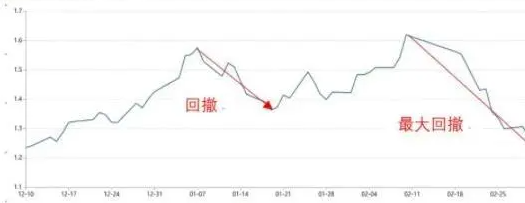 可以简单理解为:选取一段时间,资金达到最多之后,会出现回落,这个回落的范围就叫回撤。