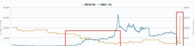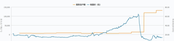 比如中潜股份,股价翻十倍的过程中,股东户数是整体下降的,由1.8万户下降至不到4000户。
