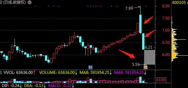 受庄家操纵,股价走势诡异,无缘无故拉涨停或跌停,这种通常是短线操作,而趋势庄股,基本是6倍以上开始暴跌,暴跌之初大阴线居多,而后是连续缩量一字跌停。