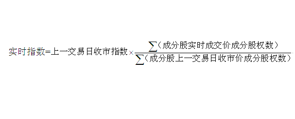 每个交易日集合竞价开市后用成份股的开市价计算开市指数,其后在交易时间内用成份股的实时成交价计算实时指数,收市后用成份股的收市价计算收市指数。