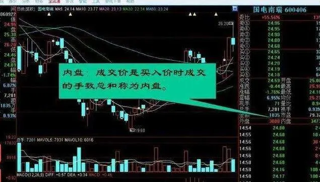 内盘是一个主动性卖出盘,在盘口处用绿色字体表示。如果内盘数据大于外盘,这意味着卖方大量抛售,股价可能下跌;外盘是一个主动性买入盘,在盘口时用红色字体显示。如果外盘的数据大于内盘的数据,说明买方力量强大,市场股价可能上涨。