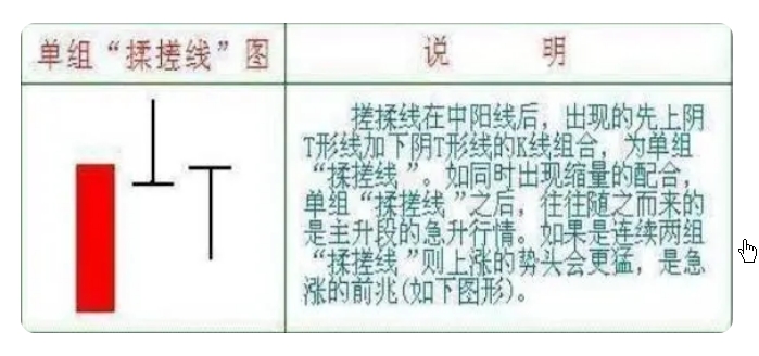 搓揉线即一根T形和一根倒T形K线的组合,就象洗衣服来回搓揉一样,在趋势途中表明主力在洗盘,经过来回的搓揉自然会洗得干净。