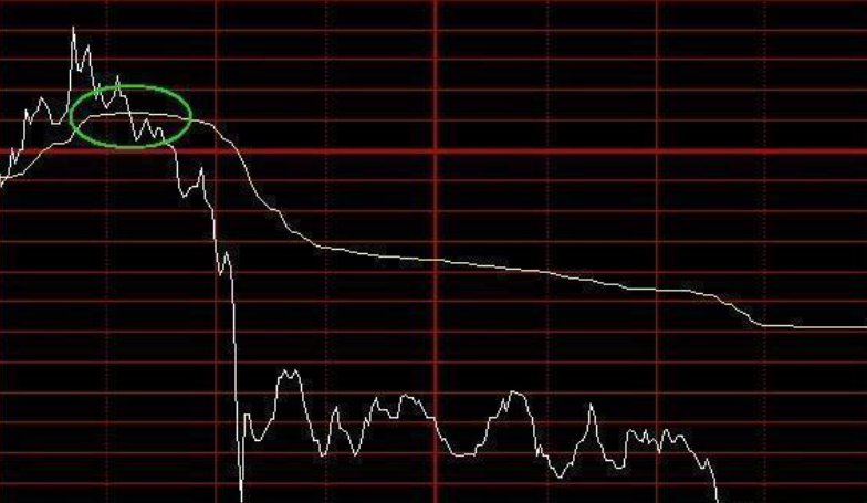 下午开盘后,红色柱线突然变短,同时绿色柱线开始变长。这说明市场上打压行情下跌的空方力量开始变强。受到空方力量的打压,这段时间市场行情开始见顶回落。