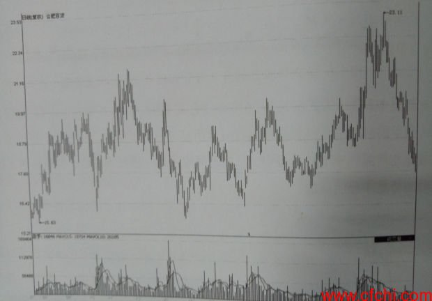 如图3所示为合肥百货2010年7月至2011年10月期间走势图,此股在这长达一年多的时间里,其总体运行方向既不是向上、也不是向下,而是处于橫向的盘整震荡之中。这就是横盘震荡趋势,在此盘整趋势中,更适宜于展开短线意义上的波段操作。