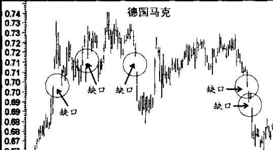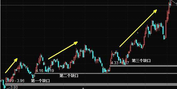 缺口是指股价在连续的波动中有一段价格没有任何成交,在股价的走势图中留下空白区域,又称为跳空。在K线图中,缺口反映出某天股价最高价比前一天最低价还低或者最低价比前一天最高价还高。缺口是行情延续过程中经常出现的一种技术图形。当缺口出现以后,行情往往会朝着某个方向快速发展,该缺口也成为日后较强的支撑或阻力区域。因此,利用缺口理论对行情大势进行研判是股票交易过程中的一个重要手段。