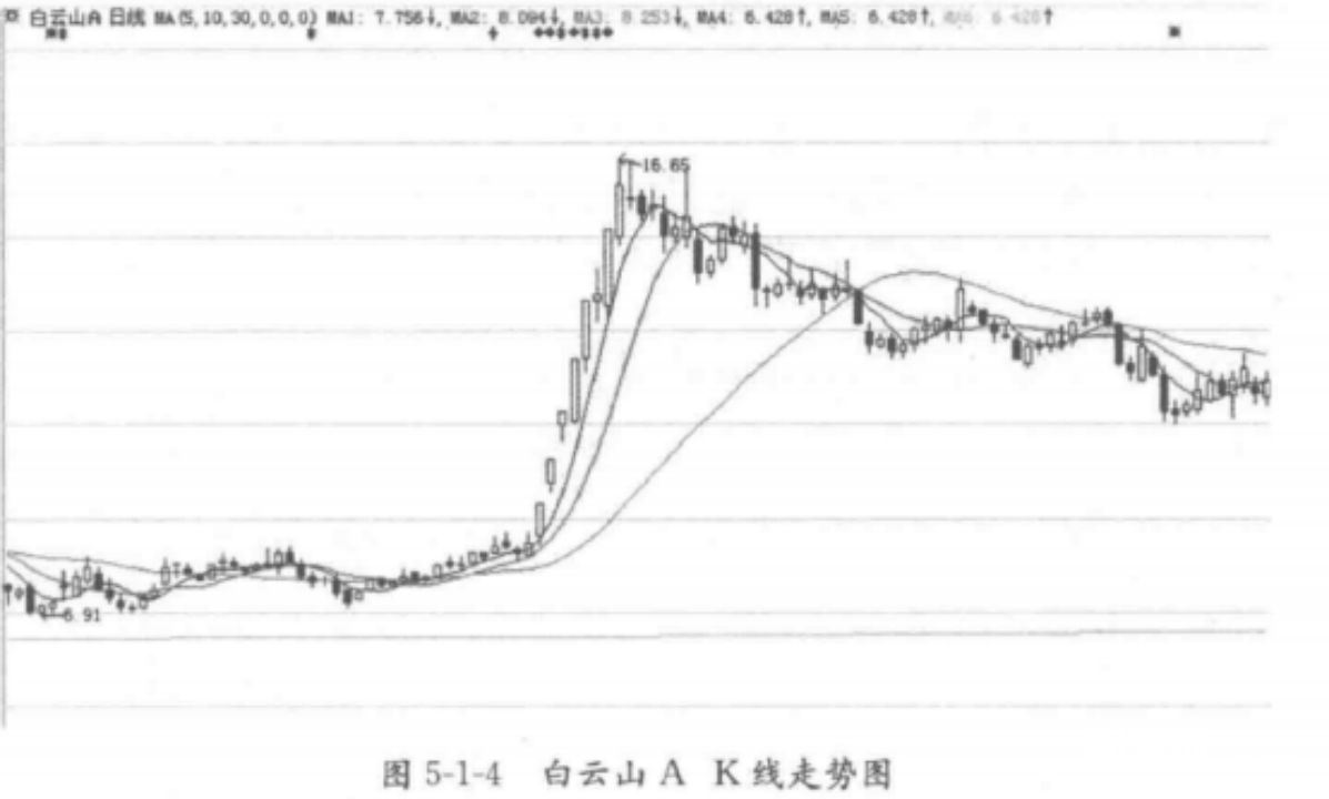 如图5-1-4,2009年10月30日,白云山A (000522) 出现了一个强势的涨停板,且在2009年10月30日之前,大盘处于振荡盘整走势中,股市的趋势运行环境给予了配合。这种情况下我们可以将分析的重点放在个股身上。