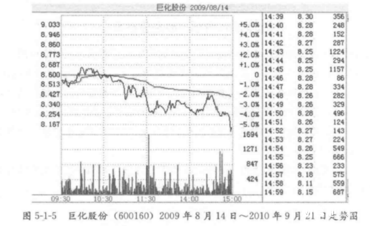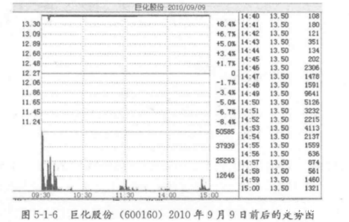 如图5-1-6,从2010年9月9日后的走势来看,该股并没有出现大幅度的回调下跌,也较好地保持住了涨停板突破成果,此时逢该股回调后的低点买股布局。