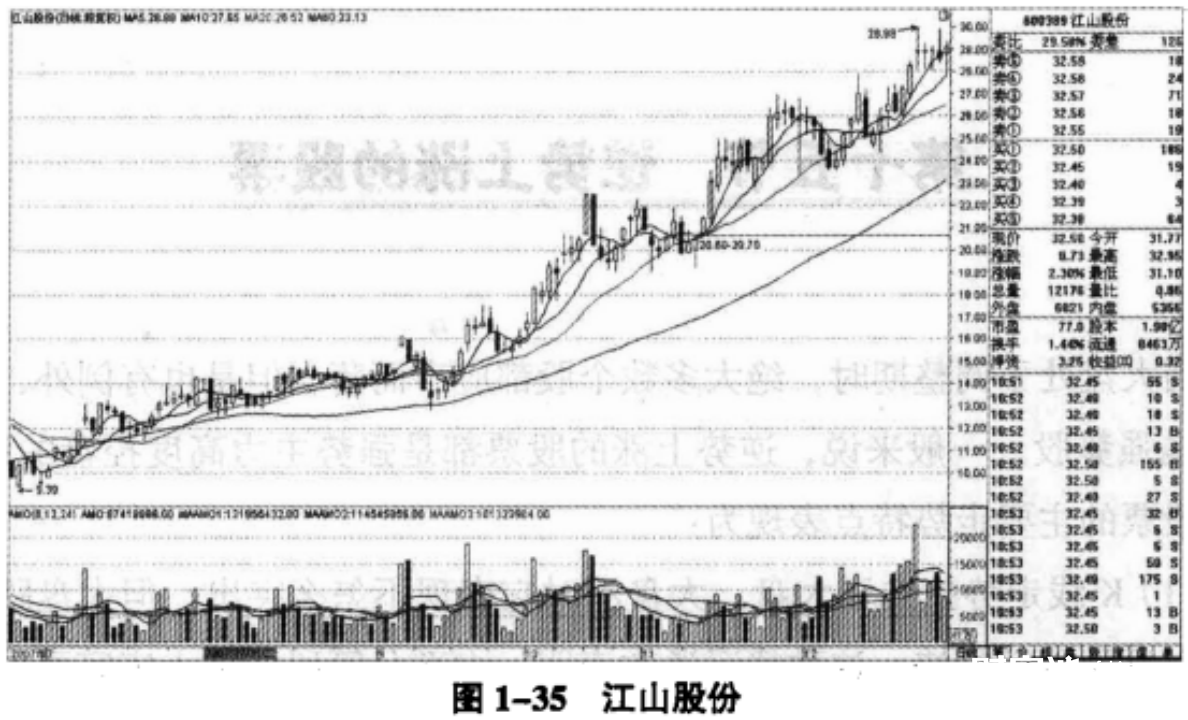 江山股份在2007年6月份前表现一般,也没有人太注意,主力大约在这个时间已经完成建仓工作。之后,用3个月完成了震荡洗盘,接着开始了拉升。就在10月份,大盘发生了逆转,调整幅度达到20%以上。但是,该股却没有受到任何影响,依然我行我素地上涨。