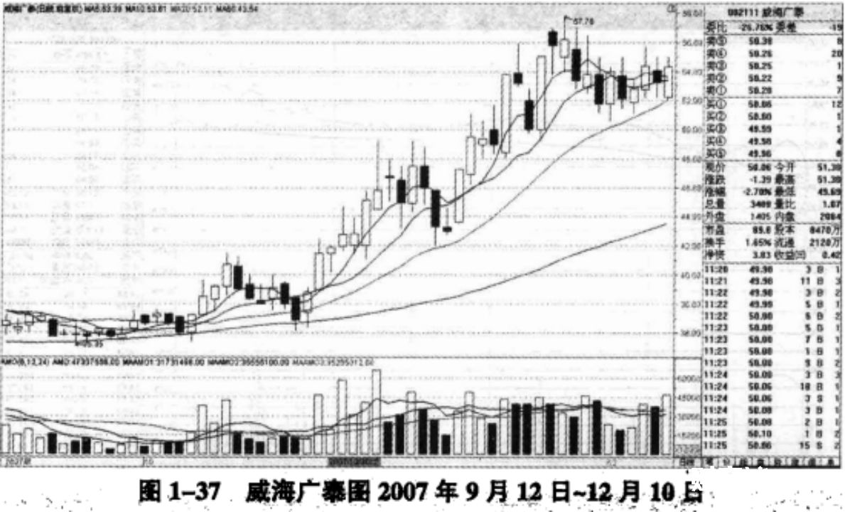 相同的例子还有威海广泰。该股在2007年9月份以前根本没有什么表现,但是,当大盘开始调整的时候,该股却逆势大涨,并创历史新高。对于逆势大涨的股票,等到大盘趋势变好的时候,要谨防主力出货,不可过贪。