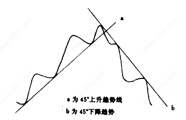在底部操作中,重仓买进不是在突破下降趋势线的阶段,而是在可能形成上升趋势的时候。在顶部操作时则不然,一旦有形成顶部的种种迹象后,并确认股价已有效突破上升45°趋势线,就意味股价上升趋势已结束,未来股价运动方向可能就是下跌趋势。
