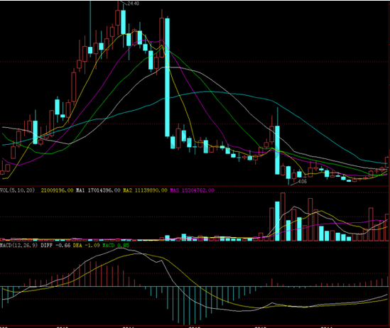 从上图我们呢可以看到,macd指标的两条线还处在零轴的下方,大家知道macd的零轴是一个平衡点,而现在此时macd指标的两个值均为复制,显然显示该股月线上还处在空头市场中,而正好与上面的rsi指标形态上是两个不同的意义。