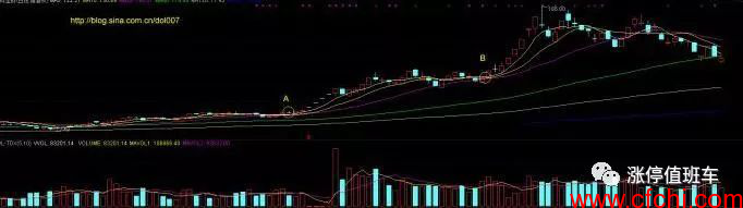 再看东方能源2015年的走势,A点股价也是回调到120日均线之后才开始了主升。但股价回调到120日均线,应该早已跌破60日均线,或者20日死叉60日均线,短期均线系统中已经认定了空头,按照个人的习惯,绝对不会去120日均线附近抄底,只有股价站上60日均线,才具备再次介入的依据。如果真的股价会再次上升,那从120日上攻到60日均线,往往涨幅也不大。到了60日均线,形态良好的话完全可以再次介入,依旧较好。