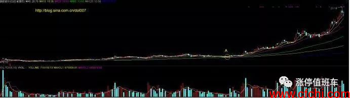 2、股价很少处于低位,常为近期最高点,有的甚至在历史新高点上发力上攻;