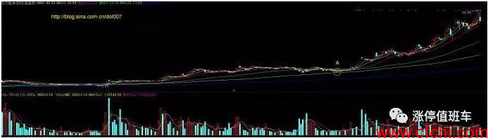 除了多头回调20日均线容易形成主升之外,我们看看60日均线是否也能形成主升呢?从上图的千山药机中我们看到的A点其实跟60日线不远了,的确形成了主升。如下图,新湖中宝2014-2015年的一段主升行情,我们看到60日K线附近企稳之后马上展开了一波新的行情。从均线上来看,股票进入多头行情后第一次回调到60日K线往往容易形成第一次主升,第二次回调到60日均线也值得介入。还是那样的规律,首次主升必选先放量,二次主升必须是缩量回调之后再次放量。