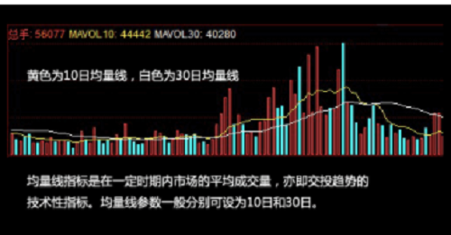 股票在运行,在一段时间内股票的成交量的总和之后平均,就是均量线,是在股票成交量的柱体中形成的比较平滑的曲线。通常情况下均量线的参数有5日均量线(MA5)、10日均量线(MA10)、还有40日均量线(MA40)。