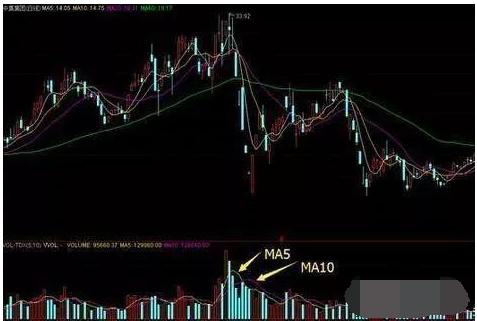 4。股价随着成交量的缓慢放大而逐渐上涨,渐渐出现爆发式井喷行情,成交量显著增加。在股价连续暴涨之后,成交量大幅萎缩,同时股价快速回落,此时表明涨势已接近尾声,股价上涨乏力。由于多头能量过度释放,庄家有出货迹象,趋势将出现明显的逆转,股价将大幅下跌。