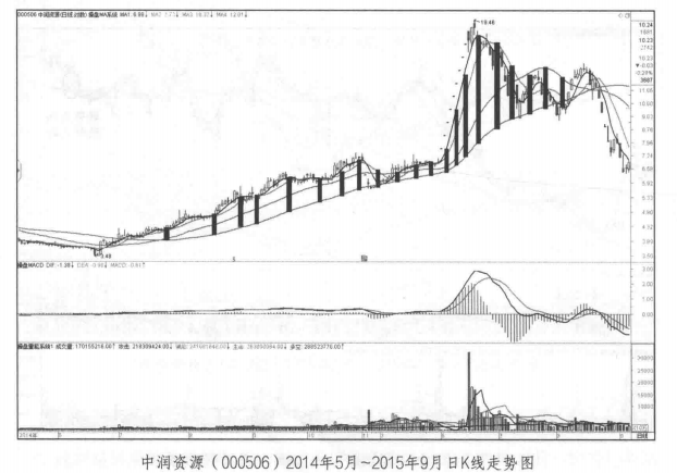 下图用竖直的柱体表明了中润资源(000506)在这段走势期间均线排列厚度的变化。在上升趋势启动初期均线的厚度逐渐变大,但是由于K线的实体不大,直接导致上升趋势性不够强,厚度增加的幅度也不是非常大。
