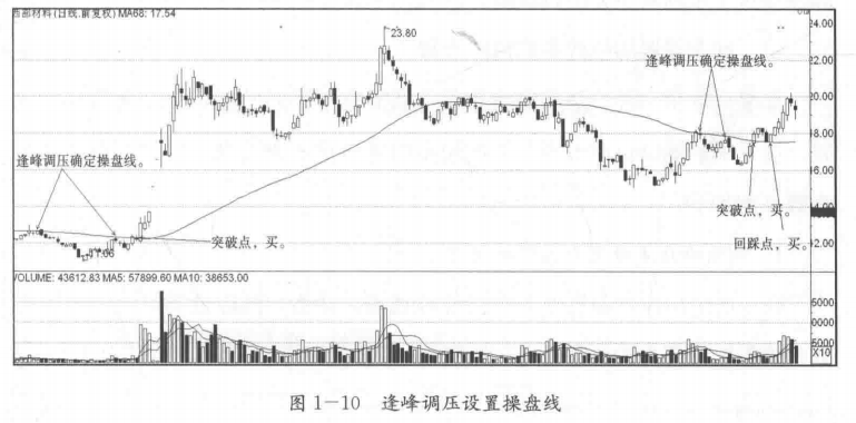 第一种方法,我们以变制变,因股、因时、因点的变化而变化,紧紧以某个阶段价格的最大压力点即峰顶点调压山峰线,以某个阶段的最大支撑点即谷底点调撑山谷线,这样调出的参数值才是在万千密密麻麻均价线中最有用的线,才是众里寻觅千百度的她。