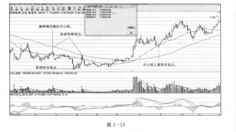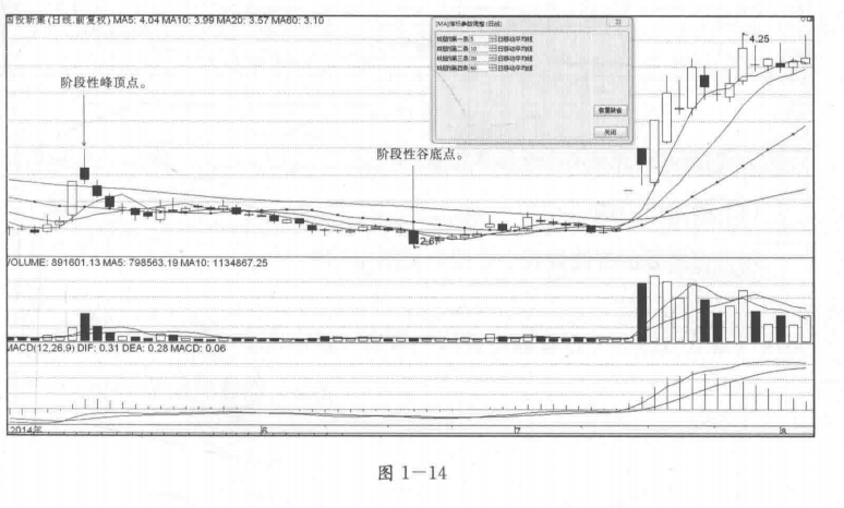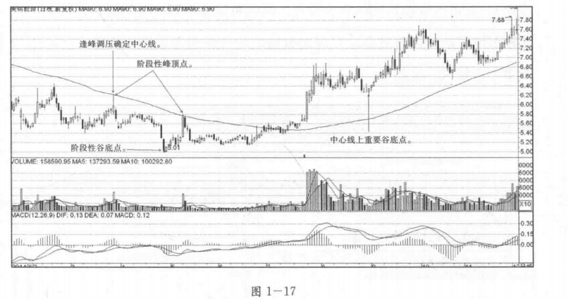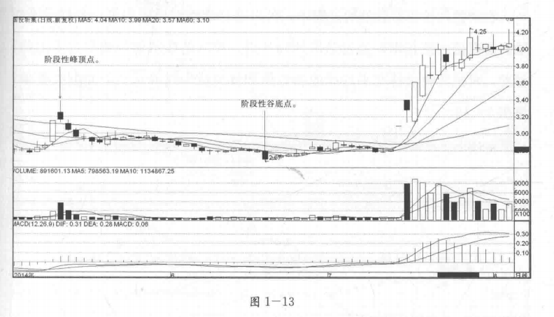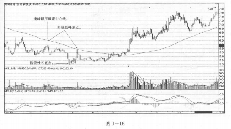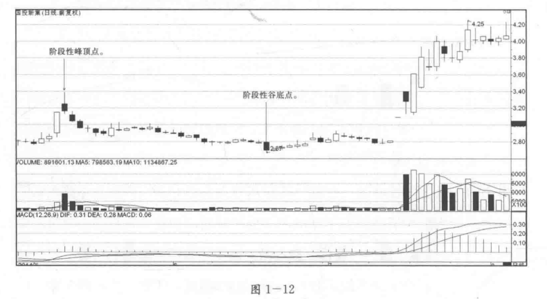 (1)确定阶段性谷底点与阶段性峰顶点,注意,阶段性谷底点的位置在后,阶段性峰顶点的位置在先。见图1—12。