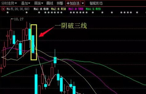 (“一阴破三线(一阴线破三均线)”这是股价暴跌的征兆!应果断离场!)