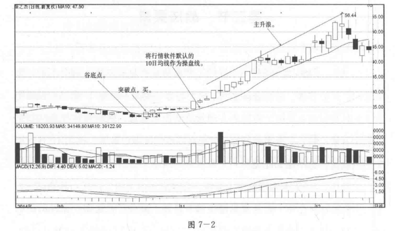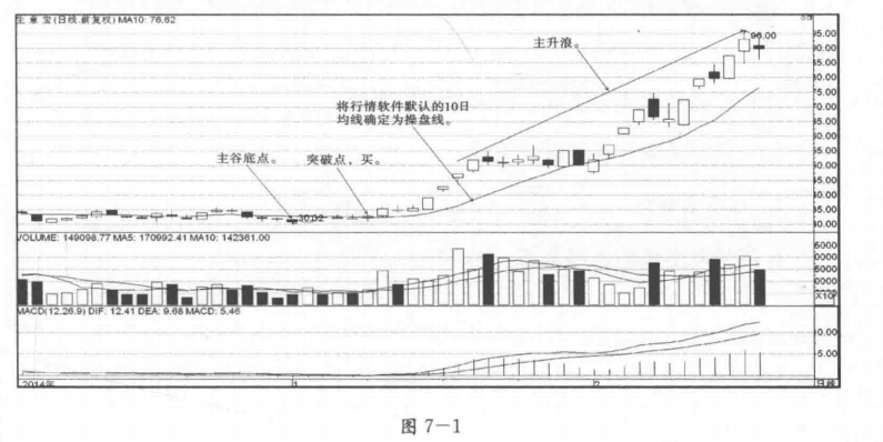 将行情软件默认的10日均线确定为操盘线。如生意宝(002095),见图7—1。