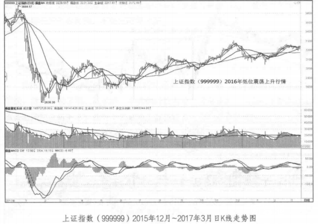 如图所示,2016年A股均以结构性行情为主,从2638的低点开始走的是持续震荡上升的行情,虽然整理上只有三波30分钟上的小波段行情,但是配合上热点还是有很多大牛股出现。